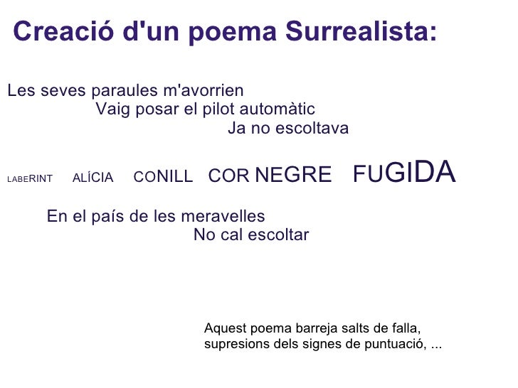 Els surrealistes defensaven la llibertat total, que en literatura comportava fer ús de l’escriptura automàtica i del collage.